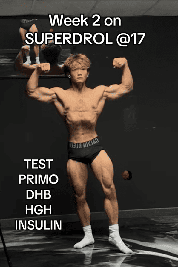 One of his posts read: “Week two on Superdrol at 17 after already being on testosterone, primabolan, DHB, HGH, and insulin.”