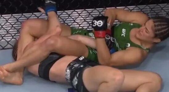Elise Reed survives a close call, getting her arm almost snapped by Loopy Godinez at Noche UFC
