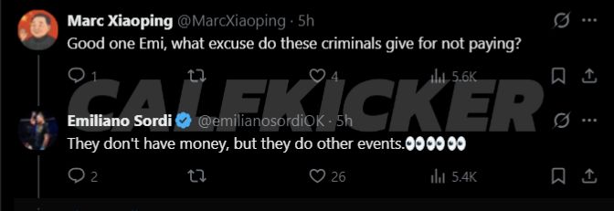 When asked by another user about the reasoning behind the delayed payment, Sordi suggested the organization claimed financial constraints while simultaneously continuing to organize additional events.