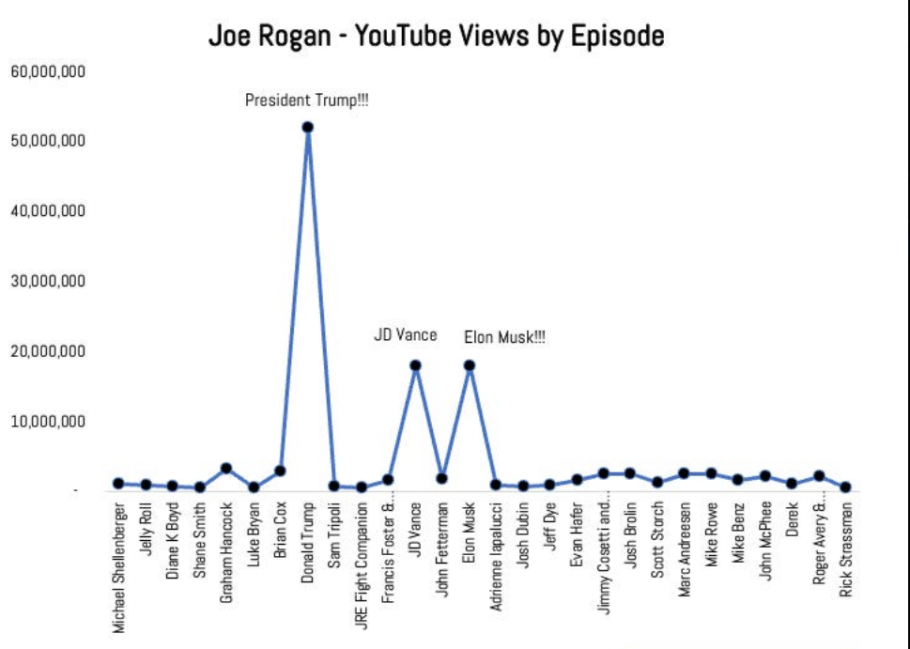 “Look at this image and tell me that Joe Rogan made Trump, not vice versa,” the analyst wrote. “Yet everyone flipped the causality around last year.”