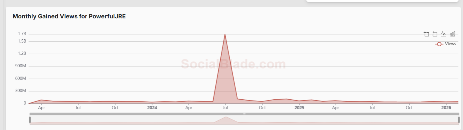 Looking at YouTube viewership data for Joe Rogan Experience episodes, the numbers tell a striking story.