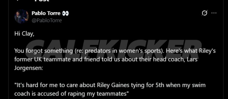 This week ESPN contributor Pablo Torre attempted a deep dive into Riley Gaines which he framed through internal documents, teammate testimony and on-record reporting from Madison Pauly. The project was clearly designed to pull apart the polished public image Gaines has built since 2022. Yet as Torre’s investigation bounced across social media, one voice cut through the noise — former teammate Paula Scanlan, who denounced the framing and defended Gaines with raw, unfiltered detail from her own experience.
