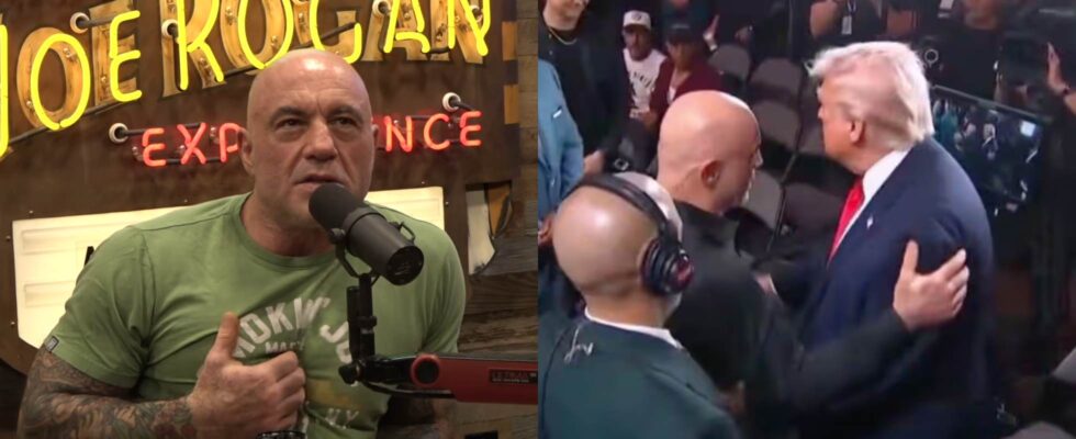 The exchange stands in contrast to Rogan’s public appearance alongside Trump at UFC 327, where the two exchanged a notably warm greeting in front of cameras.
