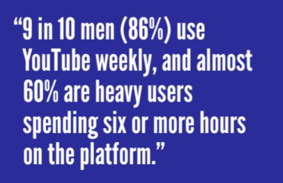 YouTube plays a central role in this pattern. Nearly nine in ten men use the platform weekly and close to 60% are heavy users who spend six hours or more on it. The site functions as a major hub for news clips, commentary, tutorials and entertainment. For many men it has replaced regular television.