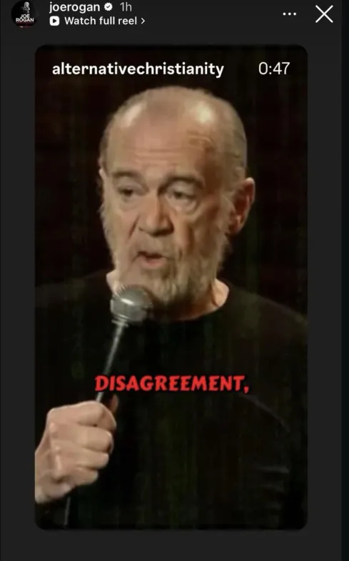 Podcast host and UFC commentator Joe Rogan recently shared a video on his Instagram story that appeared to feature the late George Carlin delivering a monologue on identity, ideology, and the human tendency toward willful ignorance.