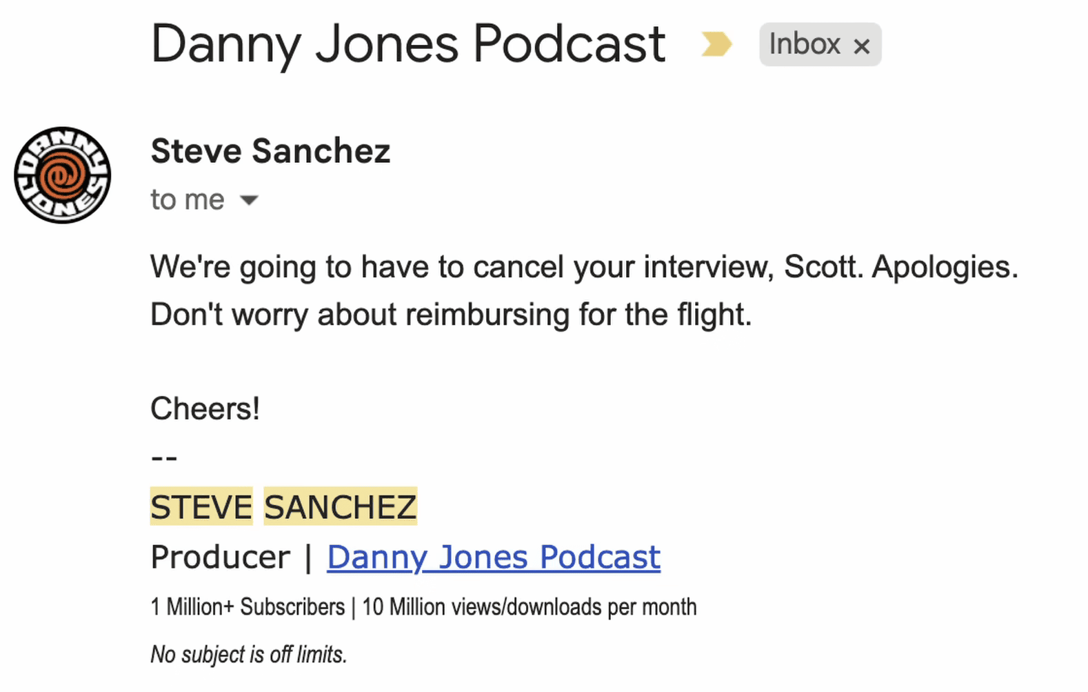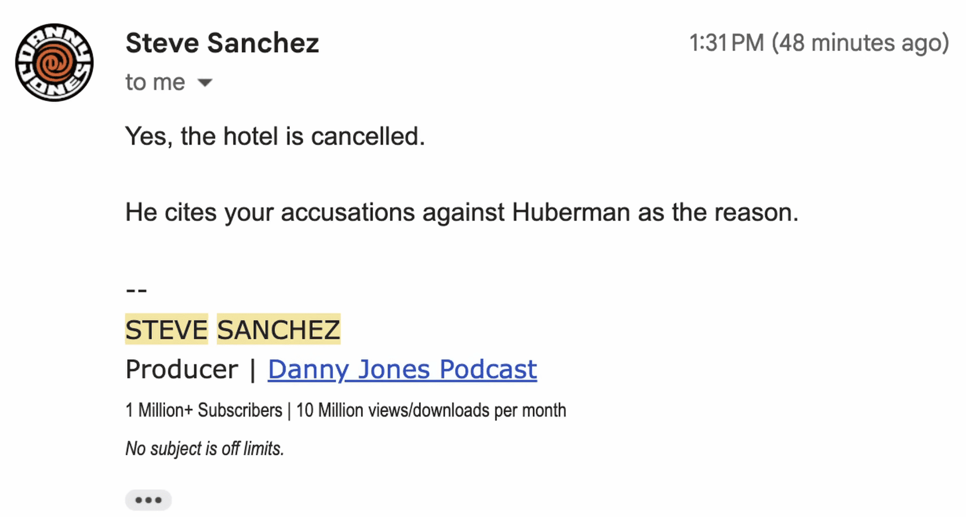 The irony was not lost on Carney. The subject line of Sanchez’s cancellation email read “No subject off limits.” But apparently, one subject was indeed off limits: “accurately reporting Huberman’s changing opinions on science relating to the sponsorship money that he gets.”