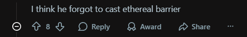 Another joked, “I think he forgot to cast ethereal barrier.”
