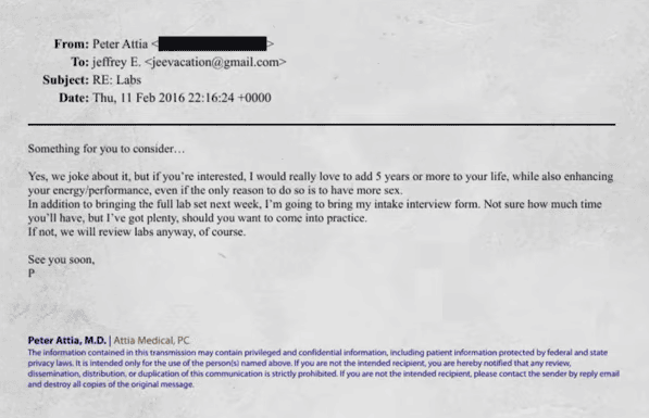 Attia’s initial impression was enthusiastic: “He might literally be one of the most interesting people I’ve ever met.” The relationship developed quickly from there, with over 1,700 PDF files mentioning Attia’s name throughout the documents.