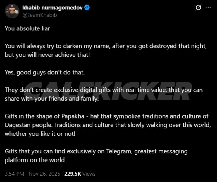 Nurmagomedov fired back at McGregor’s accusations with a strongly worded response on Twitter defending both the project and his integrity.