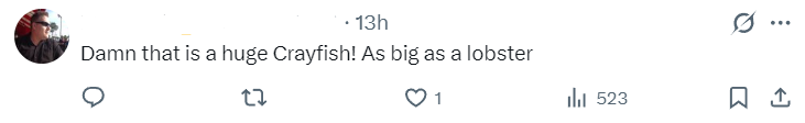 Social media responses ranged from disgust to disbelief. One user noted the size of the crustacean, commenting that it appeared as large as a lobster.