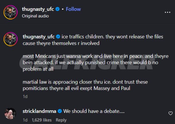 UFC middleweight Sean Strickland responded to Mitchell’s post with a challenge: “We should have a debate…..”